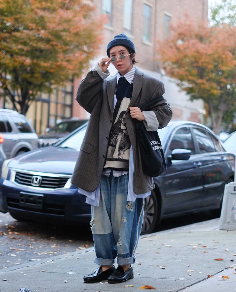 Admittedly, I am nervous about broaching this subject. I don’t write, I like to keep my personal life private, and I am by no means an authority on fashion. However, I have noticed a gap in the literature about dressing trans bodies, and a gaping void when it comes to dressing the bodies of pregnant men or nonbinary people. Until Rihanna, there was little written for anyone who wanted to wear more than whatever wrap top and yoga pants the en vogue “mommy brand” was pushing at the moment, made of course from the stretchiest, cheapest fabric on the market. Pregnancy is often classified as a liminal time, and the current landscape for maternity clothes presents fashion as a binary choice between style and comfort. I spent a good amount of both my pregnancies in pajamas, but consider this write-up to be my argument that you can still have it both ways. As I said, I’m no expert. These are simply my thoughts and notes as a trans person who has been pregnant twice on how I maintained my personal menswear aesthetic through the second and third trimesters.