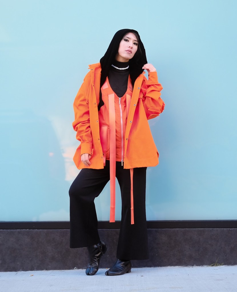 During pregnancy, if you bind your chest you will most likely be advised to stop for health and safety reasons. This presents a new challenge when choosing a top: how do you minimize the appearance of enlarged breasts and a growing midsection without discomfort? I opted for loose, boxy cuts and lots of layering.
